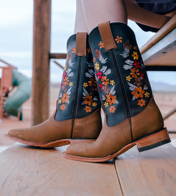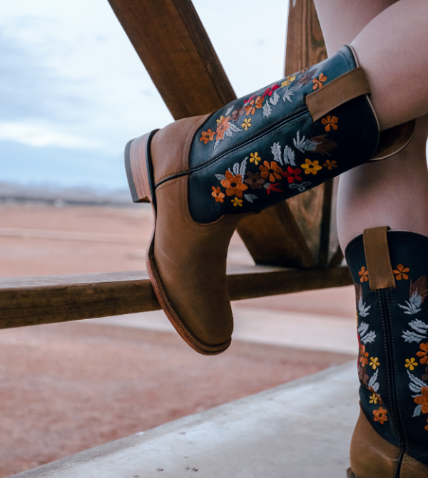 Luce una elegancia vibrante con la bota The Sunrise en color Tan. Con un tubo en color chocolate adornado con bordado floral colorido, esta bota combina diseño moderno con artesanía tradicional para un estilo atemporal.