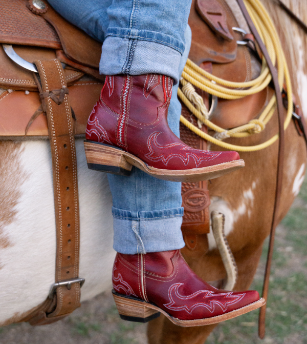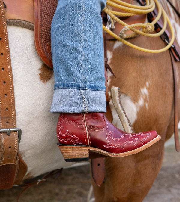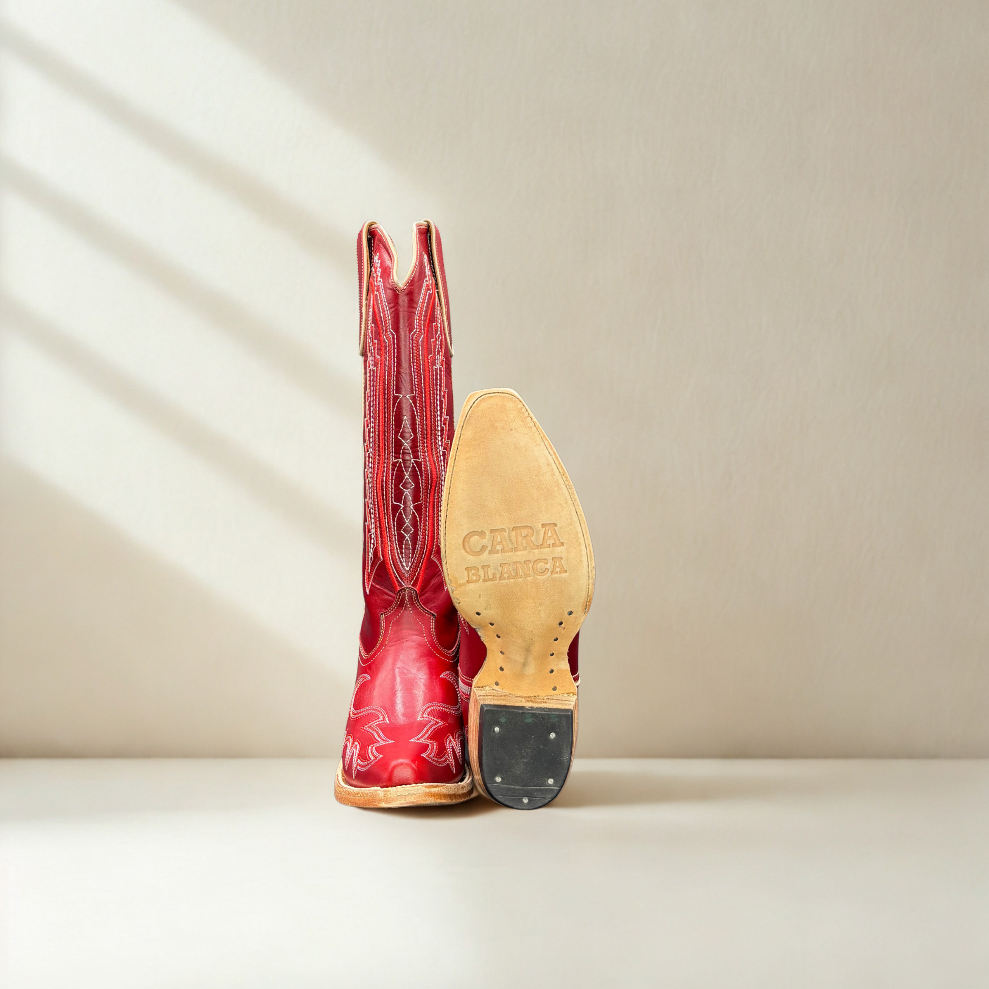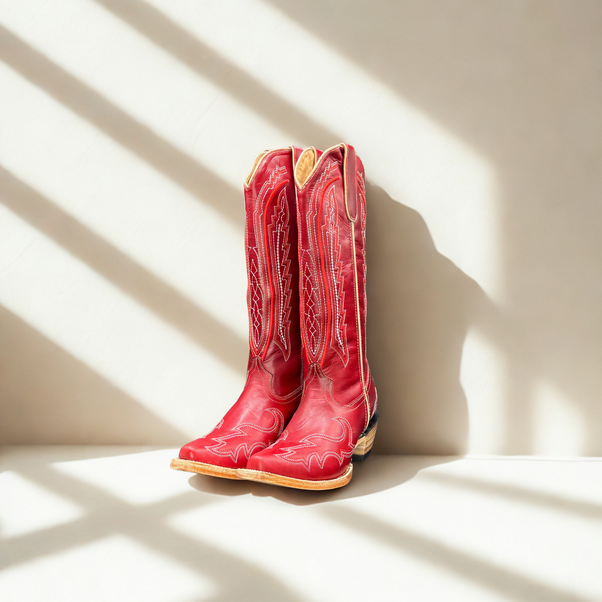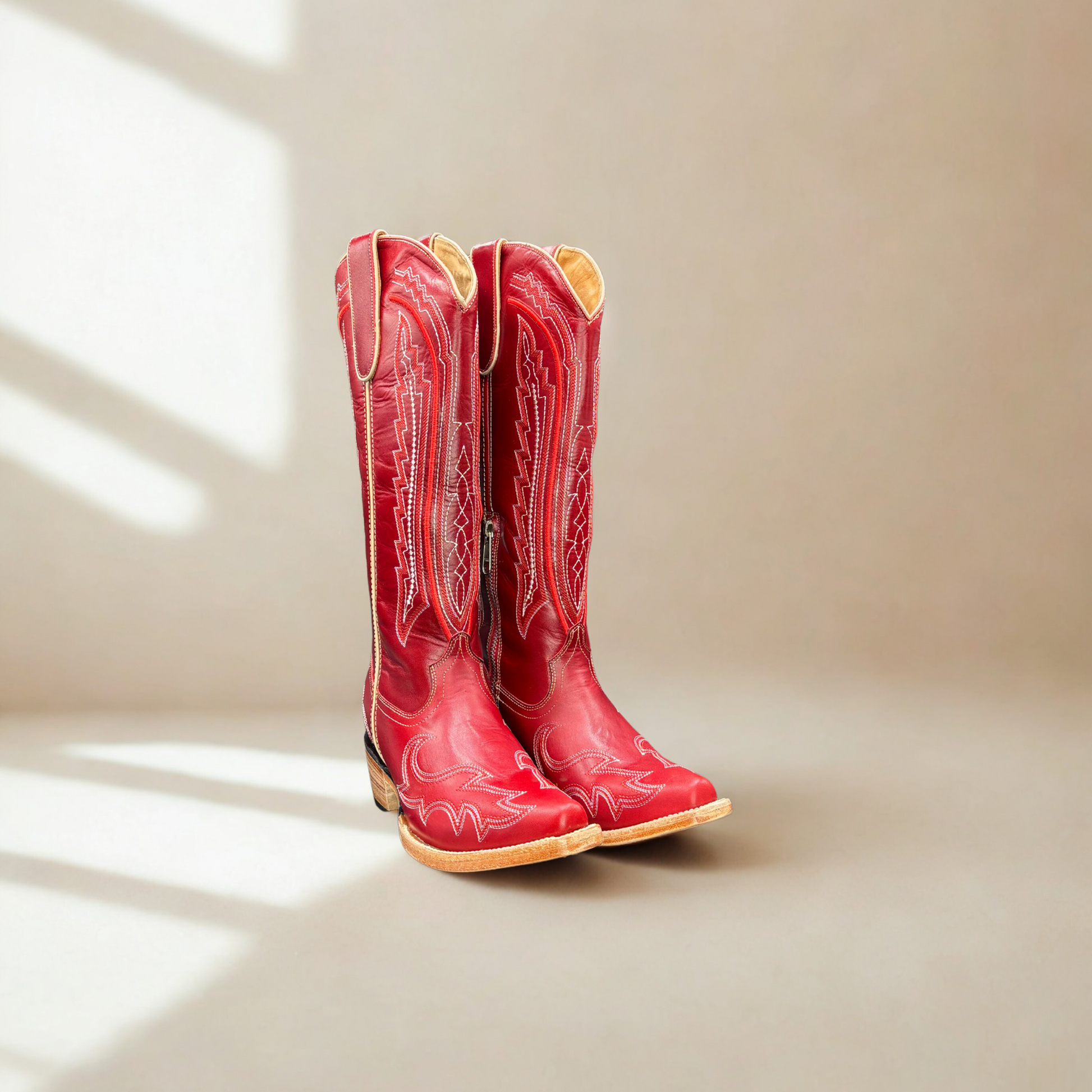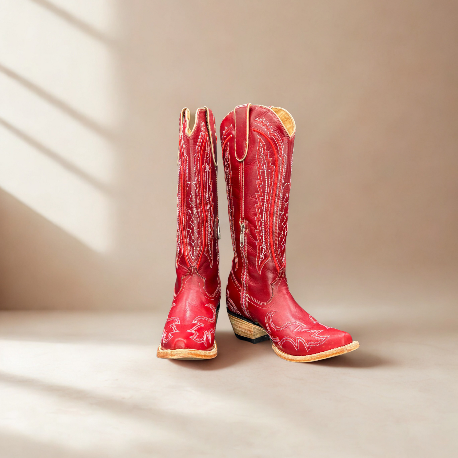 The Desert Heat boot delivers striking Western style with premium craftsmanship. It features a tall shaft with bold stitching, a functional side zipper for easy wear, and a vibrant red leather finish designed for durability and versatility.