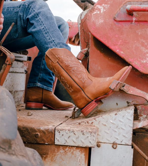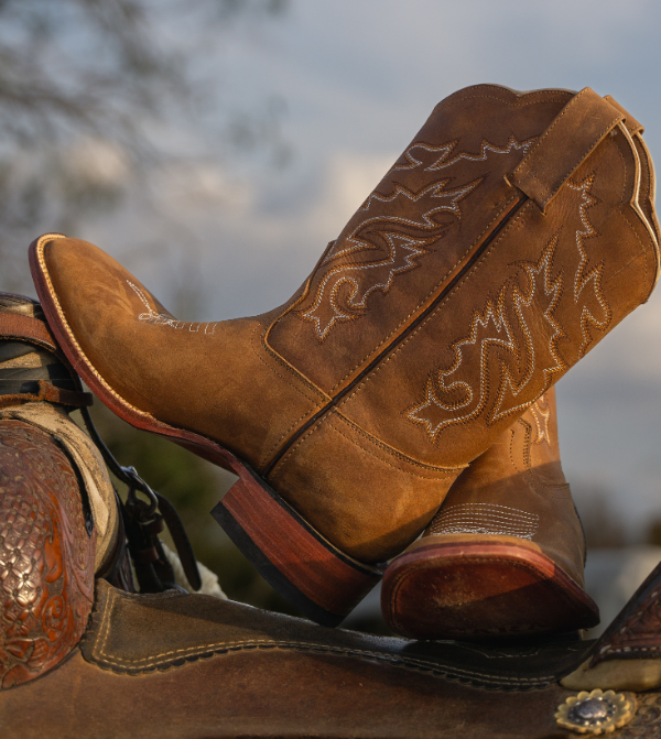 The Outlander, Classic Western-style boot, enhanced with a distinctive mango color.